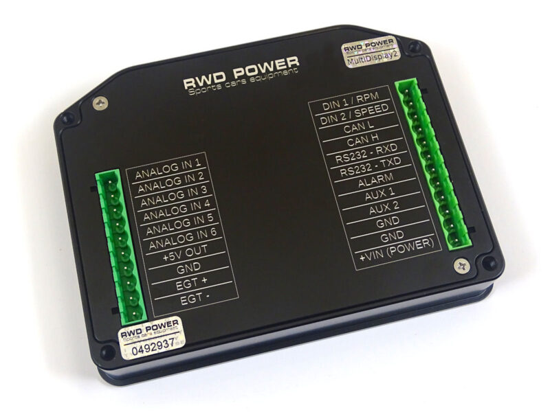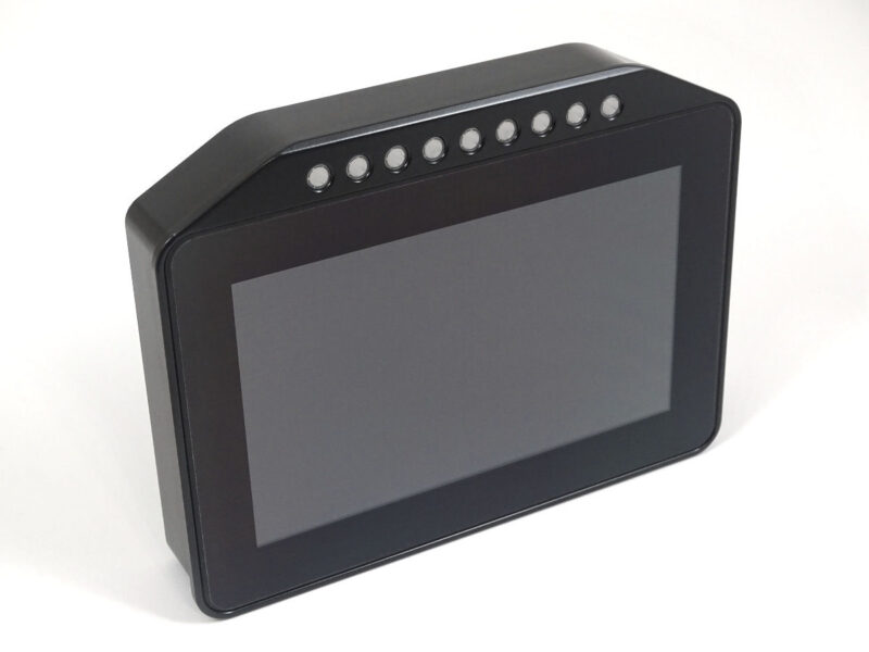 DASH 5″ jest uniwersalnym urządzeniem monitorującym parametry silnika. Zbiera parametry z szyny CAN, UART (RS232) oraz wejść analogowych i cyfrowych. Pozwala wizualizować je w postaci konfigurowalnych komponentów umieszczanych na wyświetlaczu LCD. Posiada u góry linijkę superjasnych diod LED, które można skonfigurować np. jako SHIFT light. Może współpracować również z zewnętrznymi rozszerzeniami i adapterami.